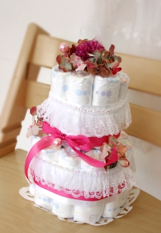 こちらはピンクのオムツケーキです。