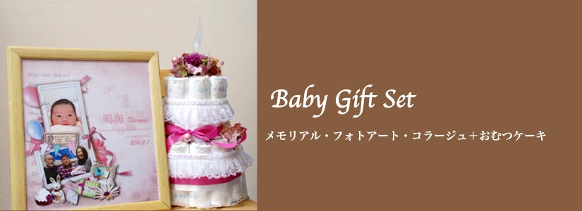 フォトアートとオムツケーキのお得なギフトセット 14,800円(税込15,540円)